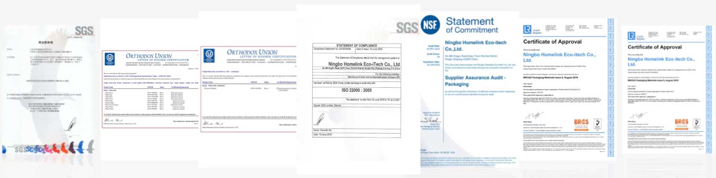 Our company has successively passed ISO9001 quality management system and ISO14001 environmental management system certification, and took the lead in passing ISO22000, HACCP, GMP, KOSHER, NSF and BRC and other food safety management certification and international retail safety technology standard system certification in the industry. We are China Customs AEO Advanced Certified Enterprise, meeting the strict standards of world-renowned companies such as Amazon, IKEA, Walgreen, etc. and successfully passing their factory inspections.